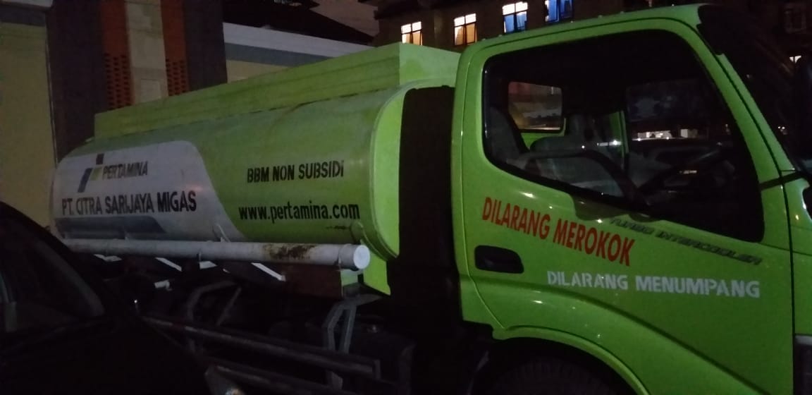 BALI TRIBUNE - Sebuah truk tangki khusus bahan bakar minyak (BBM) non subsidi bernomor polisi DK 9229 BC warna hijau milik PT.