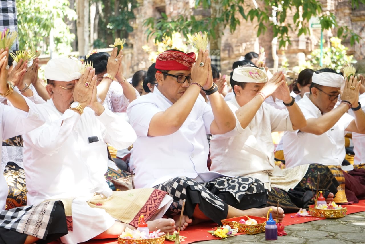 balitribune.co.id | Tabanan - Tingkatkan sradha bhakti sebagai umat beragama, jajaran Pemkab Tabanan melaksanakan persembahyangan Bhakti Penganyar di Pura Luhur Giri Salaka Alas Purwa, Desa Kalipahit, Tegaldlimo, Banyuwangi.