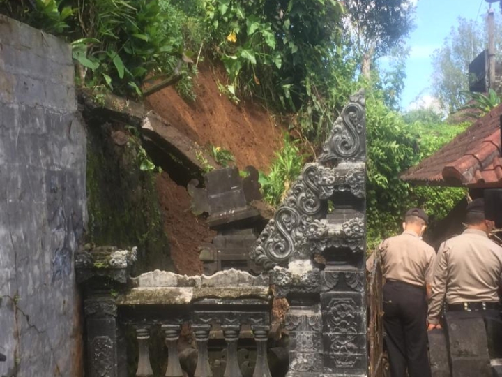 Manggisari Kembali Longsor, Tebing Amblas Timpa Bangunan Pelinggih