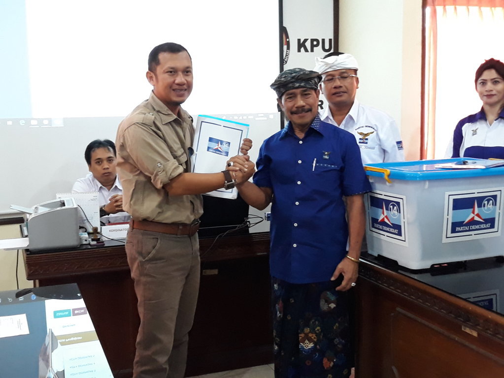 BALI TRIBUNE - Partai Demokrat Bangli mengawali pendaftaranbakal calon legeslatif ( Caleg) terlebih dahulu melakukan persembahyangan bersama di Pura Kehen Bangli,Selasa (17/7). Usai melakukan persembahyangan bersama di pura terbesar di kecamatan Bangli tersebut ,baru melakukan pendaftran bakal Caleg ke Kantor KPU Bangli Ketua DPC Partai Demokrat Bangli, I Komang Carles mengatakan tujuan persembahyangan bersama dilakukan tiada lain untuk memohon doa restu