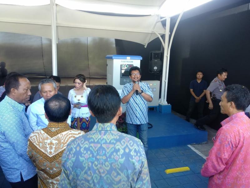 Bali Tribune / PERESMIAN - Komisaris Utama PT Opinteh Joyo Indo, Vicarna Yasier di sela peresmian SPKLU di Tol Bali Mandara.