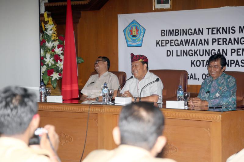 BALI TRIBUNE - Badan Kepegawaian dan Pengembangan Sumber Daya Manusia (BKPSDM) Kota Denpasar menggelar bimbingan teknis (bimtek) manajemen kepegawaian di lingkungan Pemerintah Kota Denpasar, Senin (9/4). Kegiatan dilaksanakan di ruang pertemuan BKPSDM Denpasar. Bimtek yang berlangsung selama dua hari ini diikuti 52 PNS di Kota Denpasar. Sekda Kota Denpasar AAN Rai Iswara menyampaikan bimtek yang dilaksanakan ini merupakan salah satu langkah penguatan lembaga organisasi Pemerintah Kota Denpasar dengan meningkatkan kualitas sumber daya manusia (SDM). Menurutnya ada empat langkah yang harus dilakukan untuk meningkatkan pengabdian pada masyarakat  yaitu penguatan lembaga organisasi, meningkatkan citra diri, peningkatan sumber daya manusia dan kebersamaan. Keempat indikator ini saling berkaitan satu dengan lainnya sehingga dapat memberikan pelayanan maksimal pada masyarakat. “Indikator-indikator ini harus dilakukan oleh semua PNS yang ada dilingkungan Pemerintah Kota Denpasar. Sekarang ini penguatan SDM menjadi perhatian BKPSDM,” ujarnya. Dengan adanya bintek khusus bagi PNS yang menangani menajemen kepegawaian diharapkan kedepannya semua PNS dapat berkerja dengan baik. Mengingat untuk urusan kepegawaian telah diurus oleh PNS yang mendapatkan bimtek saat ini. “Bila sudah ada PNS yang khusus menangani kepegawaian disetiap OPD, saya yakin PNS lainnya dapat lebih berkonsentrasi dalam memberikan pelayanan pada masyarakat,” ujarnya. Untuk itu Rai Iswara berharap bagi PNS yang mengikuti bimtek sekarang ini benar-benar memberikan pelayanan pada PNS lainnya terutama dalam mengurus segala administrasi kepegawaian. Dalam kesempatan tersebut Rai Iswara juga meminta pada BKPSDM bila ada aturan kepegawaian termasuk undang-undang kepegawaian sebelum di sebarkan ke masing-masing OPD agar dibuat kesimpulan tentang pelaksanaan aturan tersebut. Dengan demikian semua OPD yang ada di linkungan Pemerintah Kota Denpasar mempunyai persepsi yang sama terhadap setiap aturan yang ada. Sementara Kabid Penilaian Kinerja Aparatur dan Penghargaan BKPSDM AA Oka Wiranata menyampaikan bimtek manajemen kepegawaian diikuti semua perwakilan OPD yang berada dilingkungan Pemerintah Kota Denpasar. Bintek yang dilakukan ini merupakan hasil evaluasi yang telah dilaksanakan selama ini. Dimana kendala selama ini belum ada PNS secara khusus di masing-masing OPD menangani administrasi kepegawaian.  Sehingga bila ada PNS yang naik pangkat tidak harus sibuk dalam mengurus pemenuhan persyarakatannya. Mengingat sudah ada yang mengerjakan untuk administrasi kepegawaian tersebut. Dengan demikian PNS lain yang tidak ditugaskan mengurus manajemen kepegawaian dapat lebih konsentrasi dalam memberikan pelayanan pada masyarakat.