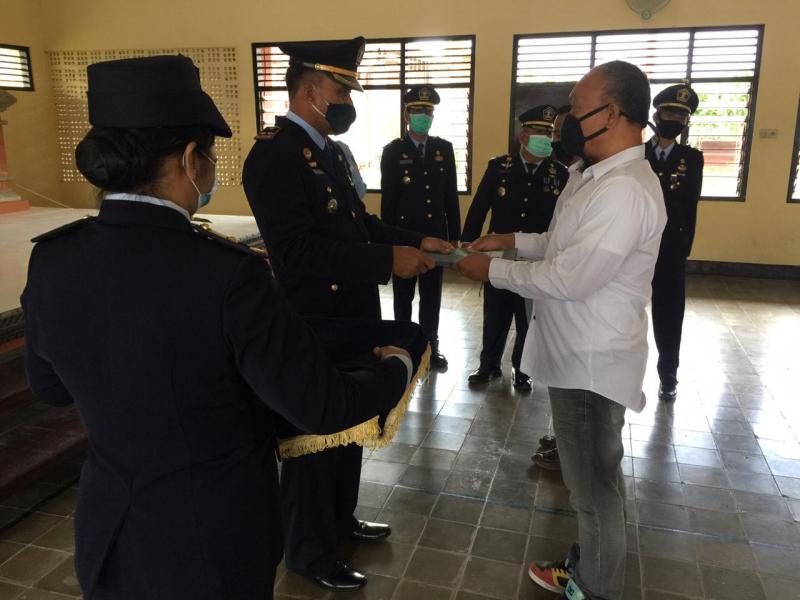 Bali Tribune/ REMISI - Penyerahan remisi di Rutan Bangli, Senin(17/8).