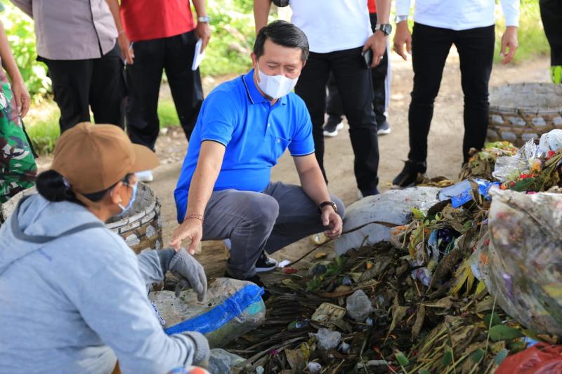 balitribune.co.id | Semarapura - Bupati Klungkung I Nyoman Suwirta meninjau lingkungan Desa Banjarangkan, Kabupaten Klungkung, Sabtu (22/1/2022). Tinjauan tersebut dalam rangka menindaklanjuti permohonan Perbekel Desa Banjarangkan, Agung Indra untuk menata taman yang ada dipinggir jalan raya dan memotivasi pegawai Tempat Olah Sampah Setempat (TOSS) Desa Banjarangkan.