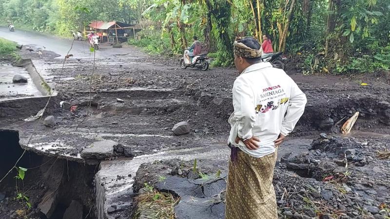 Luapan air sungai ini mengakibatkan akses jalan penghubung dua desa di dua kecamatan masing-masing, Desa Ababi, Kecamatan Abang dengan Desa Budakeling, Kecamatan Bebandem, Karangasem, kembali terputus oleh terjangan banjir.