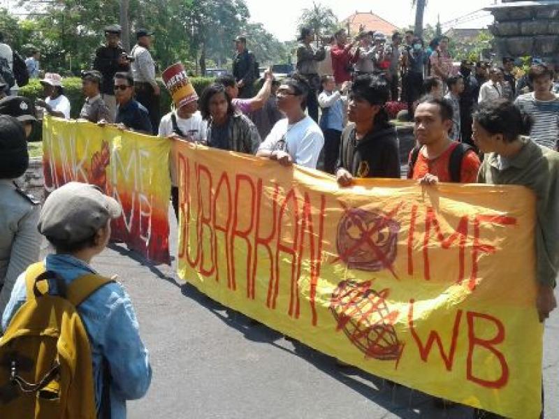 BALI TRIBUNE - Polda Bali kembali mengamankan aksi damai dengan tema “Aksi Mimbar Bebas dan Long March Gerakan Rakyat Menolak AM IMF-WB 2018” di Kawasan Civic Center, Renon, Denpasar, Jumat (12/10) kemarin.  Dalam orasinya, organisasi Aliansi Reforma Agraria (AGRA) mengkritik dan menolak semua kebijakan Bank Dunia kepada negara-negara di dunia termasuk Indonesia. “Seperti dewa saja, segala macam dominasi dan syarat yang mereka berikan agar dipatuhi negara lain,” ujar  aktivis AGRA, Rahmat. Untuk itu, ia menyerukan untuk hentikan semua bentuk kesepakatan dan kerjasama dengan IMF dan WB. Karena dinilai memboroskan uang rakyat, di tengah penderitaan rakyat korban bencana alam di Palu dan Donggala. Kapolsek Denpasar Timur AKP I Nyoman Karang Adiputra, S.H. mengatakan, pihaknya sudah memberikan arahan kepada anggota dan melakukan pengecekan kesiapan anggota. Selanjutnya, personel melaksanakan pengamanan baik pengamanan terbuka maupun pengamanan tertutup di sekitar lokasi kegiatan.  "Aksi damai ini mendapat pengamanan ketat dari pihak Kepolisian. Dimana, personel melaksanakan tugas secara profesional, humanis namun tegas dan sesuai dengan SOP yang ada,” ungkapnya saat memimpin pengamanan.