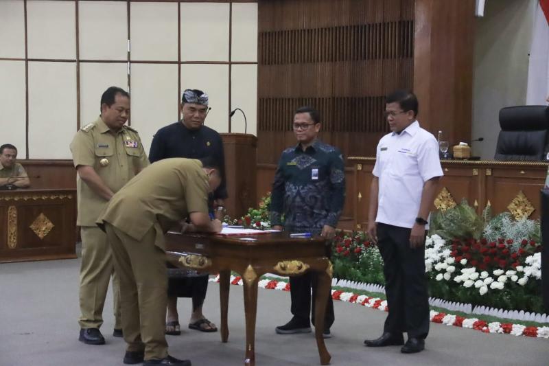 Pemerintah Provinsi Bali  telah menyerahkan Daftar Isian Pelaksanaan Anggaran (DIPA) dan Buku Alokasi Transfer ke Daerah (TKD) Tahun Anggaran 2024 untuk Provinsi dan 9 Kabupaten/Kota se-Bali bertempat di Gedung Wiswa Sabha Utama, Kantor Gubernur Bali, Senin (11/12). Secara digital Daftar Isian Pelaksanaan Anggaran (DIPA) dan Alokasi Transfer Ke Daerah (TKD) Tahun Anggaran 2024 di serahkan langsung oleh Pj. Gubernur Bali Sang Made Mahendra Jaya kepada Bupati Jembrana I Nengah Tamba dan Bupati/Wali Kota Se-Bali.