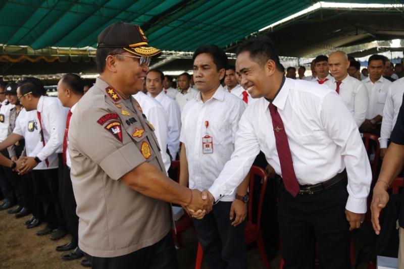 LATPRAOPS - Kapolda Bali, Irjen Pol Petrus Reinhard Golose menyalami Kasat Reskrim Polresta Denpasar, Kompol Wayan Artha Ariawan, SIk seusai acara pembukaan Latpraops, kemarin.