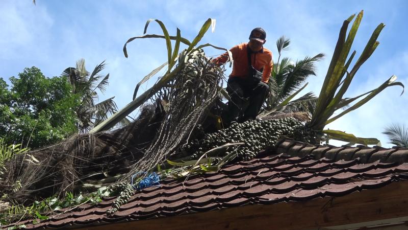Sementara itu, usai menerima laporan kejadian tersebut, sejumlah personil atau anggota dari BPBD Karangasem dan Polsek Bebandem, tiba di lokasi kejadian guna melakukan penanganan, yakni memotong dan mengevakuasi batang pohon aren berukuran besar tersebut dari atap rumah warga tersebut.