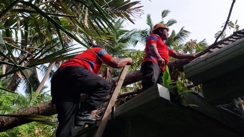 Beruntung hantaman pohon tersebut hanya membentur bagian penyirang pojok dua bangunan rumahnya yang berdempetan, sehingga tidak membahayakan keselamatan dirinya dan kelaurganya. Kejadian tersebut kemudian dilaporkannya ke Kepala Dusun Jungutan yang keesokan harinya datang melakukan pengecekkan sekaligus menghubungi BPBD Karangasem untuk bantuan penanganan pohon yang menimpa rumah tersebut. Begitu menerima laporan, kita sudah langsung luncurkan anggota TRC untuk melakukan penanganan sekalius aseesment, ujar Kalak BPBD Karangasem Ida Ketut Arimbawa.