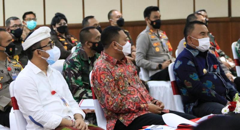 Bupati Jembrana I Negah Tamba berserta Forkompinda Jembrana mengikuti pengarahan Panglima TNI Marsekal TNI Hadi Tjahjanto dan Kapolri Jendral Pol. Listyo Sigit Prabowo terkait Penanganan Covid-19 di Provinsi Bali. Dalam pertemuan yang berlangsung di Gedung Wiswa Sabha Utama Kantor Gubernur Bali, Minggu (29/8/2021), Kapolri Jendral Pol. Listyo Sigit Prabowo menyampaikan, kunjungan ke Provinsi Bali bersama Panglima TNI Marsekal TNI Hadi Tjahjanto untuk melihat secara langsung progres penanganan Covid-19.