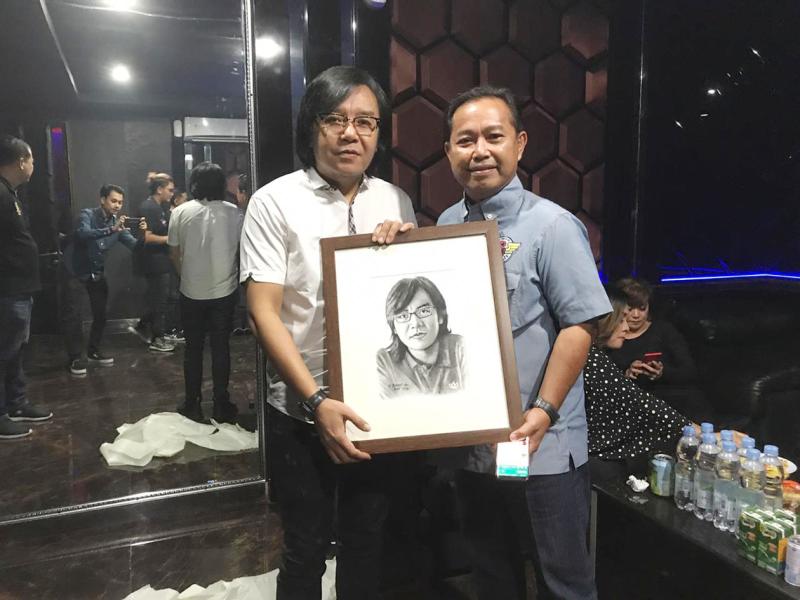 balitribune.co.id | Denpasar - Direktur Utama (Dirut) Rumah Sakit Bali Mandara (RSBM), dr Bagus Darmayasa kembali memberikan hadiah lukisan kepada artis naaional yang manggung di Boshe VVIP Club Bali. Setelah sebelumnya memberikan lukisan kepada Via Valen, kali ini dr Bagus Darmayasa memberikan hadiah lukisan kepada penyanyi Ari Bernardus Lasso seusai manggung di Boshe VVIP Club, Sabtu (27/4).