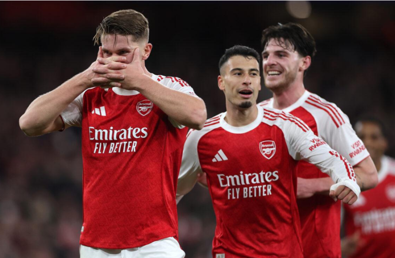 Gambaran kemenangan semakin jelas saat mengalahkan Tottenham dalam derby London utara hari Minggu, dengan Riccardo Calafiori yang pulih dari masalah pinggul untuk memulai kemenangan gemilang 4-1 di Stadion Emirates di mana Eberechi Eze mencetak hat-trick setelah gol pembuka Leandro Trossard.