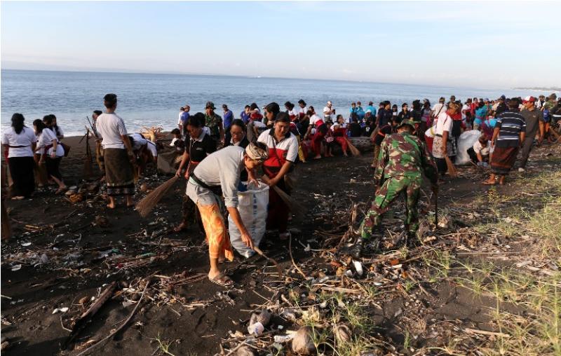 balitribune.co.id | Gianyar - Di Gianyar, aksi bersih sampah plastik yang merupakan bagian dari Gerakan Semesta Berencana Bali Resik Sampah Plastik dipusatkan di Pantai Saba, Blahbatuh, Gianyar, Minggu (7/4) kemarin. Aksi bersih pantai melibatkan seluruh jajaran pegawai Pemkab Gianyar, TNI/Polri dan organisasi kemasyarakatan lainnya.