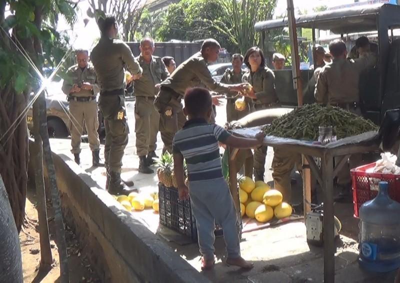 Bandel Jualan di Atas Trotoar, Satpol PP Jembrana Angkut Pedagang Buah