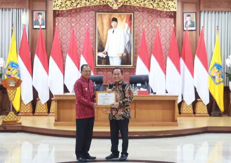 balitribune.co.id | Denpasar - Universitas Trisakti menganugerahi Gubernur Bali Wayan Koster penghargaan nasional ‘Sustainability Leadership Award’ bertepatan pada Rahina Tumpek Landep, Sabtu (Saniscara Kliwon, Landep) 3 Juni 2023. Penghargaan tersebut diberikan langsung oleh Pjs Rektor Universitas Trisakti Prof Kadarsah Suryadi kepada Gubernur Bali Wayan Koster di Gedung Gajah, Jaya Sabha, Denpasar disaksikan Pimpinan OPD Pemerintah Provinsi Bali, Rektor UNHI Prof I Made Damriyasa dan disaksikan secara daring oleh jajaran Universitas Trisakti.