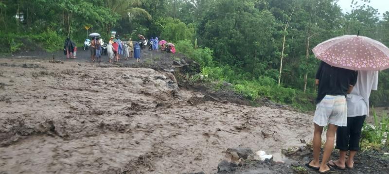 Di Banjar Butus, Desa Buanagiri, Kecamatan Bebandem, banjir bandang menerjang dan memutuskan kembali akses jalan utama yang menghubungkan sejumlah dusun di lereng Gunung Agung dengan pusat Kota Amlapura.