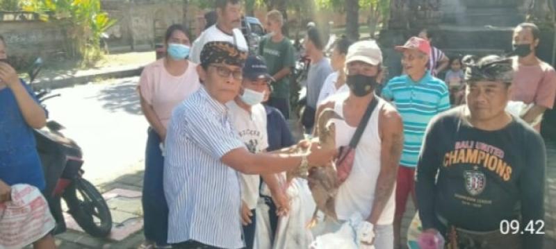 Bali Tribune / BANTUAN - Penyerahan Bebek bagi ratusan KK Miskin di Desa Blahbatuh