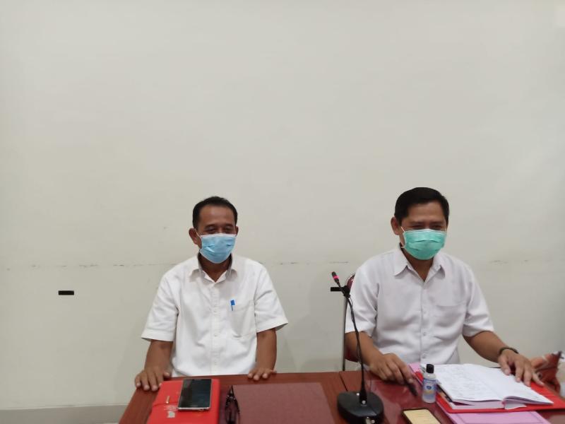 Bali Tribune/ Kadis PKP Jembrana, I Made Maharimbawa didampingi Jubir Gugas Jembrana, dr. I Gusti Agung Putu Arisantha saat menjelaskan protap pembatasan masuk Bali saat arus balik.