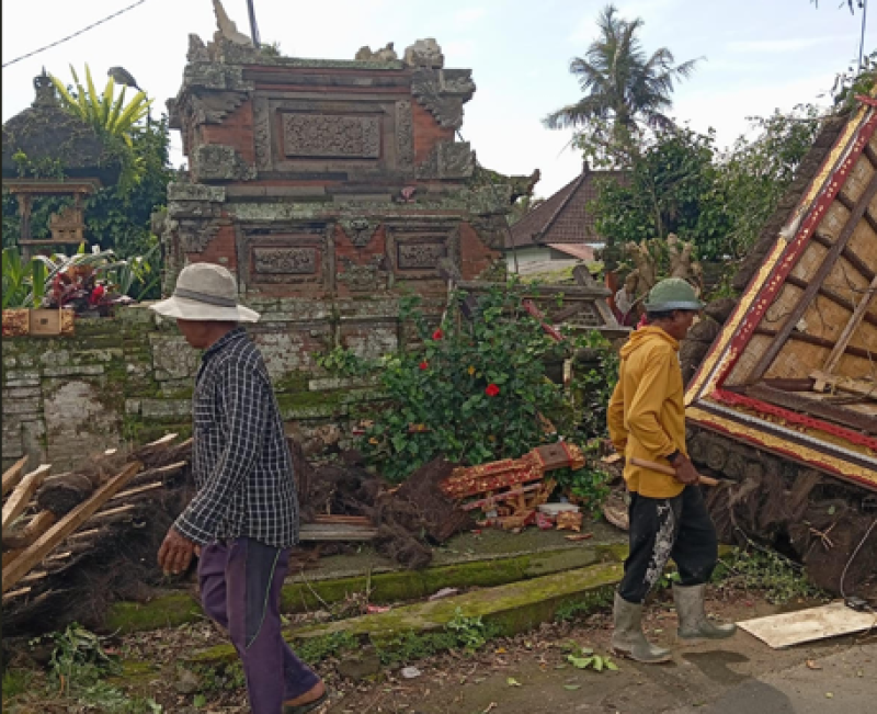 Diketahui, cuaca ekstrem di Bangli mengakibatkan kerusakan beberapa fasilitas. Selain bale kulkul di Bangbang, bangunan Bale Pesandekan di Pura Dalem Gede, Desa Adat Banua, Kecamatan Kintamani, juga roboh diterjang angin kencang, Kamis (23/1/2026). Kerugian yang ditaksir mencapai sekitar Rp350 juta.