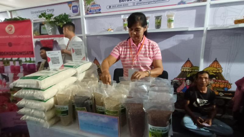 balitribune.co.id | Denpasar - Biaya produksi beras organik saat ini mulai mengalami kenaikan. Hal ini yang mengakibatkan terjadinya kenaikan harga beras organik yang diproduksi kelompok tani di Kabupaten Tabanan. Petani pun memanfaatkan permodalan dari perbankan untuk membiayai kenaikan operasional dengan menggunakan kredit usaha rakyat (KUR) dari Bank Rakyat Indonesia (BRI). Seperti diakui Ni Wayan Sari Ningsih salah seorang penjual beras organik dari Desa Wongaya Betan, Kecamatan Penebel Kabupaten Tabanan saat ditemui di Pameran Pesta Rakyat Simpedes di Lapangan Niti Mandala Renon, Denpasar, Minggu (24/9).