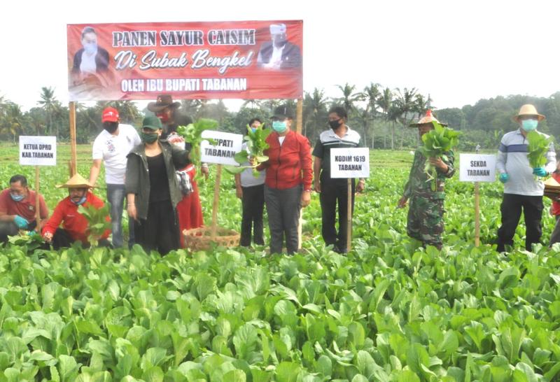 Hal itu dibuktikan Bupati Eka saat mengikuti kegiatan panen raya sayur hijau di Desa Bengkel Buduk, Kediri, Tabanan, Rabu (27/05). Turut hadir saat itu para Pimpinan Forkopimda Tabanan, Ketua DPRD Tabanan, Sekda, para Asisten dan beberapa OPD di lingkungan Pemkab Tabanan.