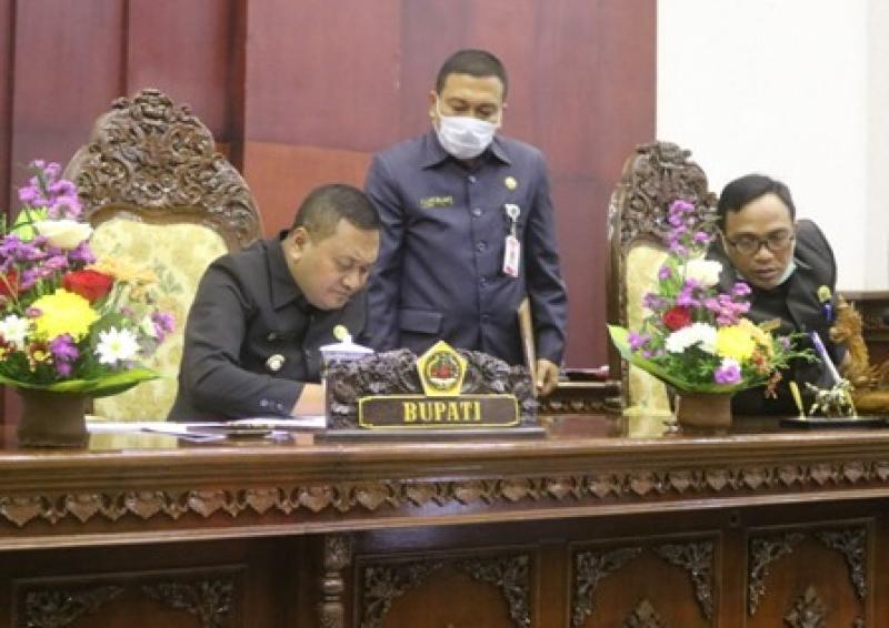 Bali Tribune/ SIDANG - Bupati Gianyar saat sidang pengesahan RPJM semesta berencana tahun 2021.