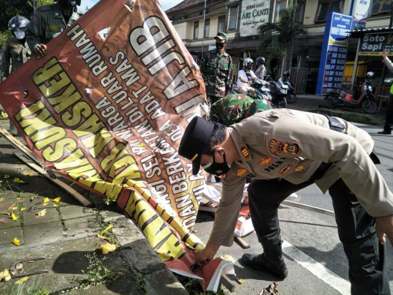 Pemberangusan digelar serentak di 7 kecamatan menggandeng Polri,TNI. Sementara hasil penertiban baliho dan spanduk ini mencapai puluhan dan diamankan dimasing-masing Kecamatan. Sementara Polsek Ubud sebelum melakukan penertiban baliho dan spanduk lebih awal. Kapolsek Ubud, AKP Gede Sudyatmaja menyampaikan, kegiatan  menertibkan dan membersihkan sepanduk maupun baliho yang tidak sesuai dengan estetika pemasangan yang dapat merusak kehindahan lingkungan serta yang tidak memiliki ijin dalam pemasangan sepanduk maupun baliho tersebut.