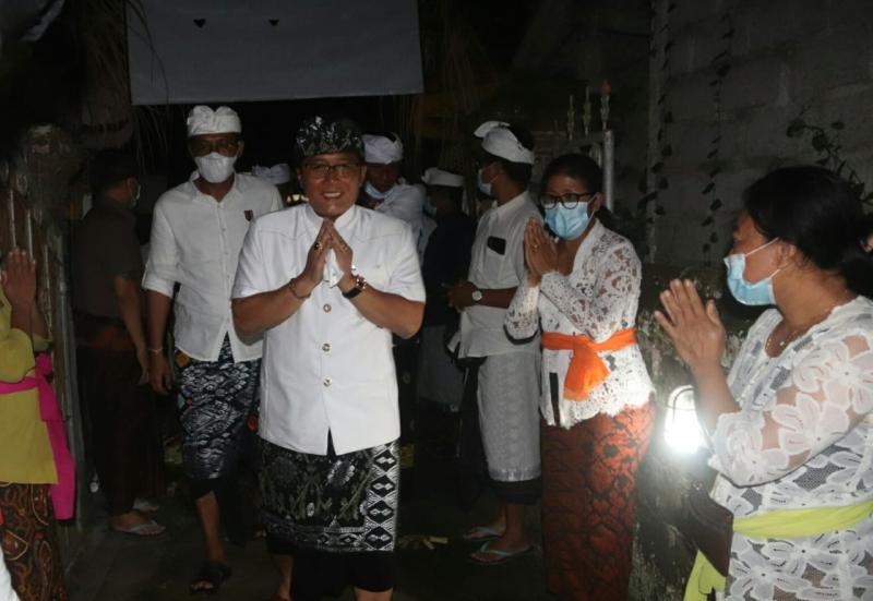 Setibanya di pura, Bupati melakukan persembahyangan bersama, untuk mendoakan agar karya berjalan dengan baik dan lancar. Sebagai wujud bhakti, Bupati medana punia secara pribadi sebesar Rp 20 juta. Dalam kesempatan itu, Bupati sangat mengapresiasi semangat krama pengempon pura telah mampu melaksanakan karya dengan tingkatan yang cukup besar, meskipun di masa pandemi Covid-19 saat ini. Diharapkan krama agar tetap mematuhi Protokol Kesehatan Covid-19, dengan melaksanakan 3 M yaitu memakai masker, mencuci tangan dan menjaga jarak.