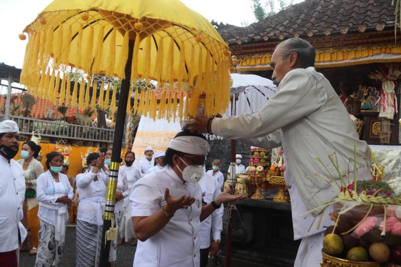 Pada kesempatan tersebut Bupati Giri Prasta melaksanakan prosesi ngelinggihan Ida Betara di Gedong Pura Puseh dan melaksanakan persembahyangan bersama. Bupati juga mengucapkan terima kasih kepada masyarakat setempat karena sudah ngayah dengan tulus ikhlas.