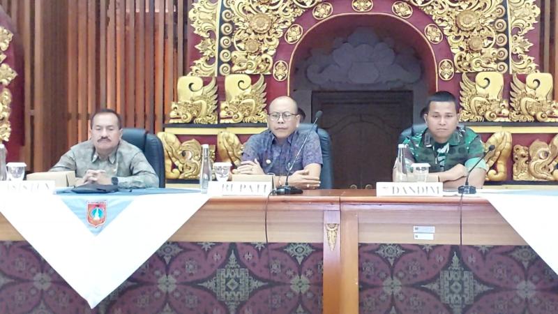 Bali Tribune / RAKOR - Bupati Karangasem, I Gusti Putu Parwata saat memimpin Rapat Koordinasi Satuan Tugas Satgas Percepatan di Wantilan Sabha Prakerti