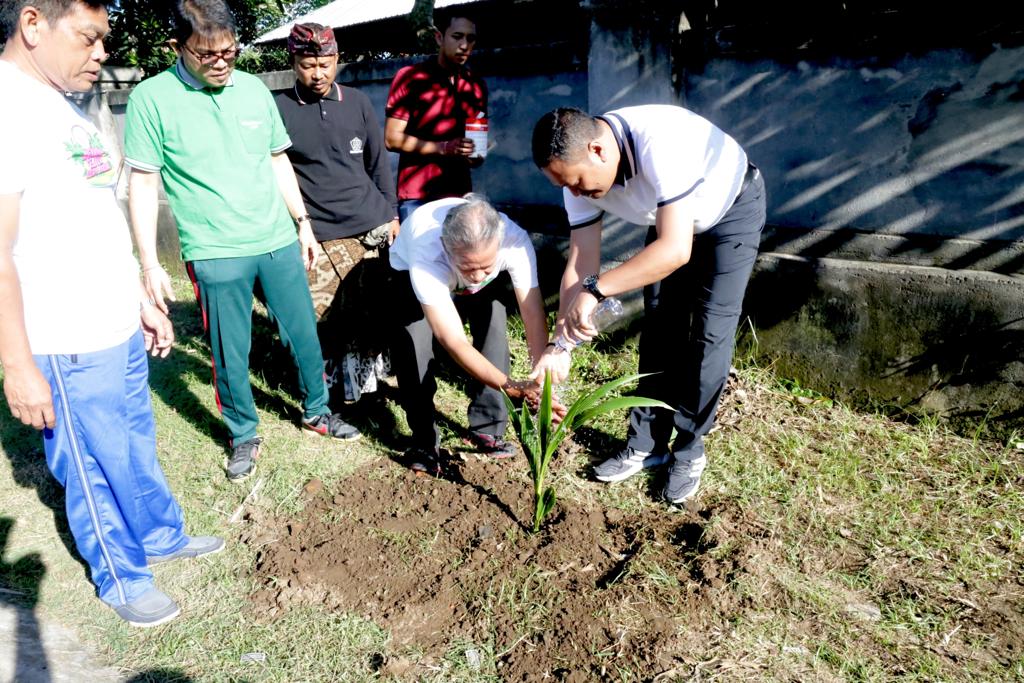 Bali Tribune, Gianyar - Tidak dapat dipungkiri kebutuhan masyarakat Bali akan kelapa daksina untuk kegiatan upacara dalam Agama Hindu, semakin hari semakin meningkat. Kelapa daksina dan beberapa kebutuhan upakara lainnya seperti janur terkadang juga dipasok dari luar Bali seperti Jawa dan Lombok. Namun, jika pasokan kurang akibat permintaan yang tinggi, tak jarang masyarakat kesulitan terutama menjelang hari raya keagaman di Bali. Hal ini dikatakan oleh Ketua yayasan Bhuana Sari, I Gusti Ngurah Amara Oka, S.Sos seusai melakukan penanaman sekitar 200 buah pohon kelapa daksina di areal Pura Dalem Desa Pakraman Tojan Blahbatuh Gianyar, Minggu (24/2). Kegiatan penanaman pohon kelapa daksina tersebut turut dihadiri Bupati Gianyar, I Made Mahayastra, Dirjen Bimas Hindu Prof. Drs. I Ketut Widnya, M.A, Ph.D, anggota yayasan dan masyarakat di Desa Pakraman Tojan. Kegiatan penanaman pohon kelapa daksina ini merupakan program dari Yayasan Bhuana Sari dalam upaya swasembada bahan upacara melalui Program Penanaman Sejuta Pohon Kelapa Daksina di seluruh Bali. Yayasan yang berlokasi di Jalan Kresna No. 3 Desa Bona Blahbatuh ini melakukan program penanaman sejuta pohon kelapa daksina bukan suatu hal yang baru namun sudah dimulai sejak 10 tahun yang lalu. Sedangkan di Desa Pakraman Tojan penanam ini sudah yang ketiga kalinya. Lebih lanjut dijelaskan, kebutuhan akan kelapa daksina di Bali tidak akan ada hentinya. Jika tidak diimbangi dengan penanaman, maka lama-kelamaan akan habis. Karena itulah yayasan yang dipimpinnya melakukan penghijauan dengan penanaman pohon kelapa daksina. “Kami tidak hanya melalukan gerakan ini di Kabupaten Gianyar saja, bahkan beberapa kabupaten di Bali seperti Bangli, Klungkung dan daerah lainnya sudah dilakukan penanaman pohon kelapa daksina,” jelas IGN Amara Oka. Ditambahkan, setelah penanaman selanjutnya untuk perawatan dan pemanfaatan hasilnya, akan diserahkan pada desa pakraman setempat. Hanya saja kata Amara Oka, seandainya hasilnya berlebih pihaknya minta beberapa biji untuk dijadikan bibit dan kemudian akan ditanam di tempat lain. Dengan terus melakukan penanaman tentunya Bali tidak akan kekurangan kelapa daksina untuk kebutuhan upacara. IGN Amara Oka juga menambahkan selain program penghijauan, pihaknya di yayasan juga konsen di bidang pendidikan dengan cara memberikan les gratis pada anak-anak SD hingga SMP di sekitar yayasan dengan materi pelajaran sekolah, Bahasa Inggris dan pendidikan keagamaan seperti membuat sarana upakara. Bupati Gianyar I Made Mahayastra seusai gerakan penanaman sejuta pohon kelapa daksina mengatakan, sangat kagum dengan apa yang telah dirintis oleh Yayasan Bhuana Sari. Kesadaran untuk ikut melestarikan tanaman langka maupun tanaman upakara harus menjadi tanggung jawab semua pihak. Dengan memanfaatkan lahan kosong milik desa adat, Bupati Mahayastra yakin Desa Pakraman Tojan bisa swasembada kebutuhan upacara khususnya kelapa daksina.