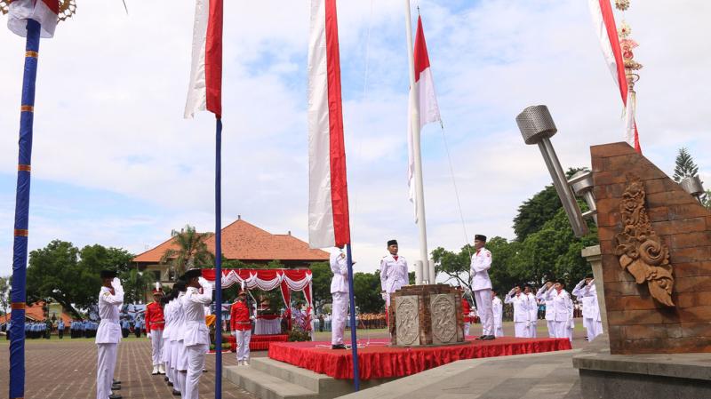 BALI TRIBUNE - Kendati dalam situasi bencana, namun perayaan HUT RI ke 73 di Karangasem berlangsung khidmat, apel Bendera peringatan detik-detik proklamasi Kemerdekaan RI berlangsung heroik dengan inspektur upacara Bupati Karangasem, IGA Mas Sumatri. Sedikit berbeda Apel Bendera yang digelar, Jumat (17/8), dengan tahun sebelumnya, dimana dalam Apel Bendera kali ini anggota TNI turun langsung sebagai komandan Paskibraka dan ada empat anggota pasukan bersenjata yang berada dalam barisan pasukan delapan Paskibra yang mengawal bendera hingga tugas pengibaran selesai dilaksanakan. HUT RI ke 73 juga menjadi berkah tersendiri bagi para Narapidana atau warga binaan Lapas Karangasem dan Lapas Khusus Anak Gianyar, Karangasem. Dimana sejumlah warga binaan di kedua Lapas ini menerima remisi yang diserahkan langsung oleh Bupati Karangasem dalam apel pemberian remisi di Lapas Dewasa. Dari data yang diperoleh koran ini, jumlah total warga binaan yang menerima remisi atau pengurangan masa tahanan sebanyak 139 orang, sementara Lapas Khusus Anak 17 orang. Dari jumlah yang mendapatkan remisi tersebut, 6 orang mendapatkan remisi 6 bulan, remisi 5 bulan sebanyak 8 orang, remisi 4 bulan sebanyak 9 orang, remisi 3 bulan sebanyak 42 orang, remisi 2 bulan sebanyak 56 orang dan remisi 1 bulan sebanyak 18 orang. Untuk Lapas Khusus Anak, yang menerima remisi 3 bulan sebanyak 2 orang, remisi 2 bulan sebanyak 2 orang dan remisi 1 bulan sebanyak 13 orang. Bupati Karangasem, IGA Mas Sumatri kepada wartawan usai Apel Bendera kemarin mengatakan, perayaan HUT RI ke 73 ini menjadi momentum bagi pemerintah dan masyarakat Karangasem untuk menggali semangat perjuangan para pahlawan dalam merebut kemerdekaan dulu untuk terus berupaya dan bekerja keras guna kemajuan pembangunan di Kabupaten Karangasem. Terlebih saat ini dengan kemajuan teknologi informasi yang luar bisa, tentu menurutnya menjadi fasilitas untuk memudahkan masyarakat dalam mengembangkan usaha, perekonomian serta penciptaan lapangan pekerjaan dan peningkatan Sumber Daya Manusia (SDM). Dengan Branding Karangasem The Spirit of Bali, tentunya spirit untuk membangun terus bisa dikembangkan utamanya dalam pembangunan infrastruktur dan SDM serta semangat atau spirit menyame braya. Pihaknya optimis dengan semangat ini kedepan bisa mengejar segala ketertinggalan untuk peningkatan kesejahteraan dan membangun perekonomian Karangasem khususnya pasca terjadinya bencana Gempa Bumi dan Erupsi Gunung Agung.
