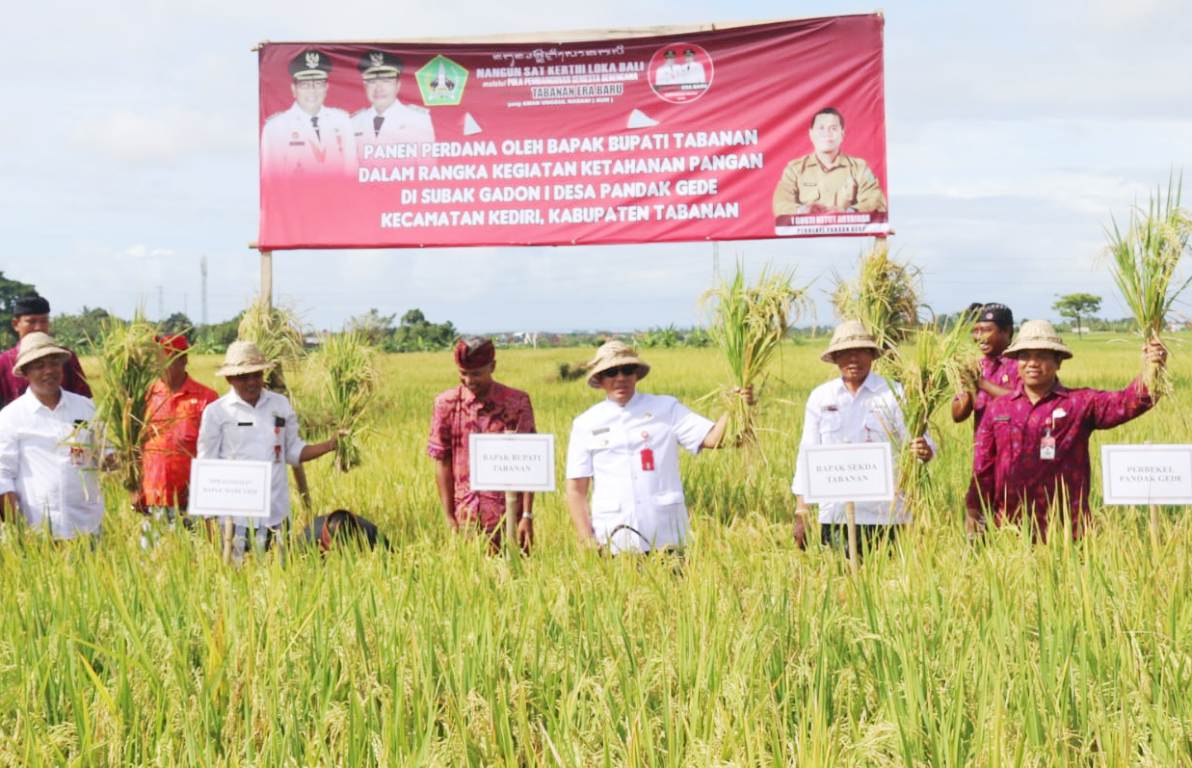 Panen padi perdana ini merupakan program Ketahanan Pangan dari Dana Desa Tahun 2022 inisiasi Pemerintah Desa Pandak Gede. Turut hadir anggota Komisi IV DPR RI asal Marga I Made Urip, Sekda dan OPD terkait, Pokli Bupati, Direktur Perusda Tabanan, Camat dan unsur Forkopimcam Kediri, Perbekel, Bendesa Adat dan para Pekaseh serta para Petani di Subak Gadon.