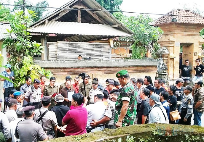 Kedatangan puluhan anggota Dalmas Polres Gianyar, TNI dan petugas dari unsur lainnya, membuat suasana sedikit mencekam. Terlebih, persoalan lahan antara I Wayan Suartana dan Ni Ketit Ribut sudah berlangsung lama. Sementara lahan yang disengketakan, adalah tanah ayahan desa seluas 2.000 m2.