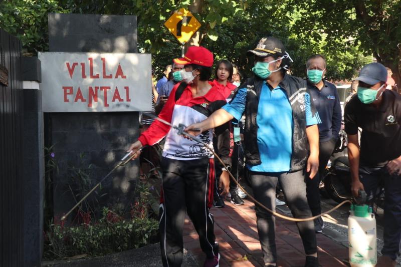 balitribune.co.id | Amlapura - Pandemik Covid-19 kini mulai meluas, Bali yang merupakan kawasan pariwisata, kini mulai gencar mencegah penyebaran Covid-19, tidak terkecuali dengan Kabupaten Karangasem. Bupati Karangasem I Gusti Ayu Mas Sumatri bersama Wakil Bupati Karangasem, Ketua DPRD Kabupaten Karangasem serta seluruh jajaran Forkopimda dan Kepala OPD di lingkungan pemerintah Kabupaten Karangasem, lakukan penyemprotan disinfektan secara masal di daerah pariwisata Candidasa untuk melakukan pencegahan penyebaran Covid-19, Minggu (15/03).
