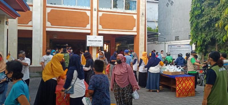 Balitribune.co.id | Denpasar -  Imbas Covid-19, tim Crisis Centre Majelis Ulama Indonesia (MUI) Bali membagikan 700 paket makanan siap jadi  di halaman sekolah Harapan Mulia, jalan Pura Demak Denpasar, Rabu (13/5) pembagian paket makanan gratis yang terdiri dari nasi bungkus air mineral, snack,  serta takjil  ini tidak hanya diperuntukan bagi umat muslim, melainkan semua warga (lintas agama).