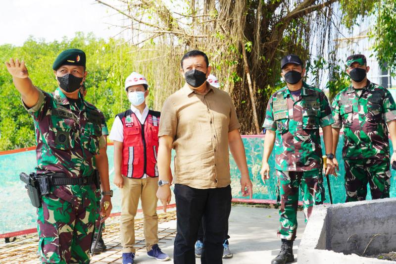 Bali Tribune/ Danrem163/Wira Satya Kolonel Inf Choirul Anam mendampingi Pangkogabwilhan II Marsdya TNI Imran Baidirus meninjau kawasan Rehabilitasi dan Konservasi Hutan Mangrove Tahura Ngurah Rai (Tahura) di Denpasar, Sabtu (26/3).