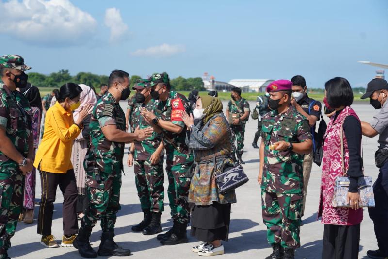 Sebelumnya, Panglima TNI Jendral TNI Andika Perkasa, didampingi Ketum Dharma Pertiwi Hetty Andika Perkasa dan rombongan tiba di Base Ops Lanud I Gusti Ngurah Rai dengan menggunakan pesawat TNI AU B-737 Sq 17  A-7305.