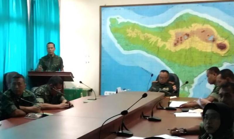 Bali Tribune, Denpasar - Dalam paparannya di hadapan Danrem 163/Wira Satya Kolonel Arh AM Suharyadi, SIP., MSi., di Ruang Rapat Tanah Aron Makorem 163/Wira Satya, Denpasar, Dandim 1626/Bangli Letkol Cpn Andy Pranoto, MSc., menyampaikan bahwa untuk kegiatan TMMD ke-104 akan dilaksanakan di Desa Peninjoan, Kecamatan Tembuku, Bangli. Adapun sasaran fisik yang siap dikerjakan meliputi, pembukaan, pengerasan, dan pengaspalan jalan, pembuatan plat beton dan senderan, serta bedah rumah. Juga kegiatan nonfisik berupa donor darah, bakti sosial kesehatan, pasar murah, dan berbagai penyuluhan kepada masyarakat. Pelibatan personel terdiri dari 1 Satuan Setingkat Kompi (SSK) pasukan TNI dari 3 matra dan akan melibatkan berbagai instansi terkait, seperti Pemkab Bangli, Polres Bangli, dan seluruh warga masyarakat Desa Peninjoan. Dalam arahannya, Danrem berpesan dan menekankan agar kegiatan tersebut dapat direncanakan dan dilaksanakan dengan sebaik-baiknya. “Yakinkan waktu yang ada untuk menyelesaikan pekerjaan yang sudah direncanakan. Saya ingin TMMD ke-104 kali ini dapat berhasil guna dan betul-betul bermanfaat bagi masyarakat”, harap Danrem, kemarin. TMMD yang dilaksanakan ini merupakan upaya nyata, tulus, dan ikhlas dari jajaran TNI untuk membantu pemerintah daerah (Pemda) dalam mempercepat pembangunan nasional di pedesaan serta meningkatkan taraf perekonomian masyarakat. “Segera sinergikan dan integrasikan seluruh potensi yang ada, sehingga TMMD ke-104 di wilayah Kodim 1626/Bangli dapat berlangsung sukses dan memberi manfaat bagi warga masyarakat,” perintah Danrem.