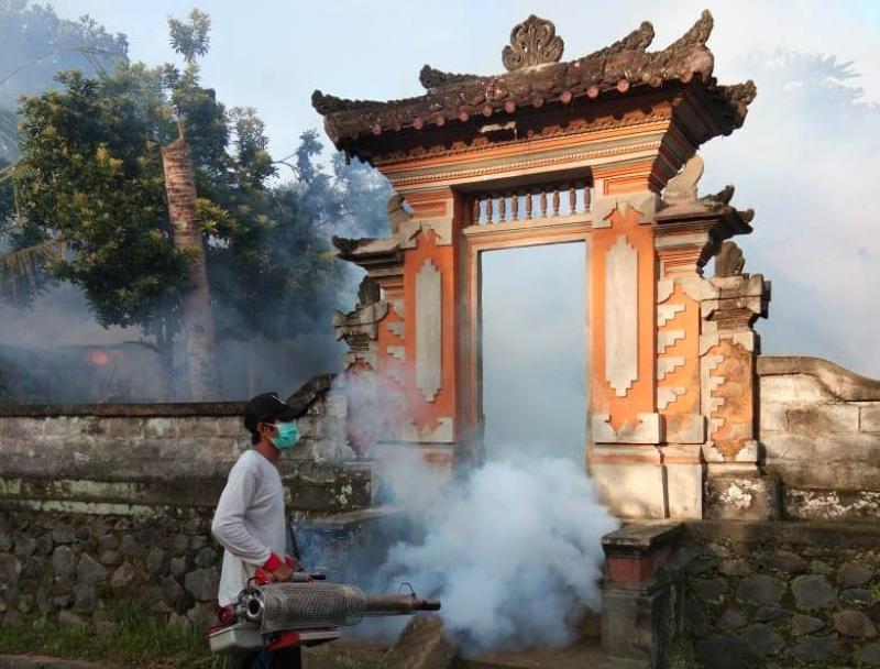 Bali Tribune, Bangli - Merebaknya temuan kasus sasfeck deman berdarah, pihak Dinas Kesehatan Bangli gencar melakukan foging. Senin (18/2) pagi, Diskes Bangli lakukan fogging di wilayah Banjar Pande, Kelurahan Cempaga, Kecamatan Bangli. Fogging dilakukan pasca salah seorang warga dilingkungan tersebut suspect demam berdarah dengue (DBD).  Kasi Pencegahan Diskes Bangli I Nyoman Sudarma mengatakan fogging dilakukan ketika ada permintaan dari masyarakat serta ada temuan kasus suspect DBD. Fogging dilakukan sebanyak dua kali di satu lokasi. "Contoh hari ini kami melaksanakan fogging di Banjar Pande, minggu depan dilaksanakan sekali lagi di lokasi yang sama,” ungkapnya.  Lantas disinggung jumlah  kasus susfeck DBD, kata Sudarma untuk bulan Febroari kasus ditemukan di Desa Bonyoh, Kecamatan Kintamani, Banjar Selat Kaja Kauh, Desa Selat, Banjar Selat Peken, Desa Manikliyu, Penglipuran, Banjar/Kelurahan Kubu, Tempek Pulung, Kelurahan Bebalang, serta di Banjar Pande, Kelurahan Cempaga. Sementara bulan Januari ditemukan di Dusun Sidawa, Desa Tamanbali, Banjar Penida Kaja, Desa Tembuku, Banjar Tembuku Kawan, Desa Tembuku, Banjar Sidembunut, Kelurahan Cempaga, Banjar Selat Peken, Desa Selat, Dusun Penaga, Desa Landih, dan Dusun Lumbuan, Desa Sulahan.  Lanjut Sudarama untuk data susfeck DBD kami dapatkan dari laporan rumah sakit dan Puskesmas “Setiap ada temuan susfeck pasti kami tindak lanjuti dengan melakukan foging, selain itu juga atas permintaan warga ,belum lama ini kami lakukan fogging di areal Polres Bangli," sebutnya. Sambungnya, karena mobilitas masyarakat cukup tinggi, gigitan nyamuk aedes aegypti dimungkinkan terjadi diluar tempat tinggalnya. Semisal seseorang asal Banjar Pande bekerja di luar kabupaten bisa jadi saat bekerja itu kena gigitan. "Mobilitas tinggi, tidak sadar digigit nyamuk. Meski gigitan tidak terjadi di  rumahnya, maka tetap harus diambil langkah pemutusan mata rantai nyamuk aedes aegypti dengan cara fogging tadi," jelasnya seraya menambahkan , untuk pelaksanaan fogging dilakukan oleh tim pelaksana fogging. Sebutnya, dari sisi anggaran masih terbilang aman, dari pemerintah sudah menganggarkan untuk pelaksanaan fogging, tahun ini anggaran Rp 300 Juta. Langkah pencegahan yang paling efektif yakni memberantas sarang nyamuk lewat Pemberatsan sarang nyammuk  melalui gerakan 4 M yakni menguras tempat penyimpaman air, menutup tempat penampungan air, mengubur atau menutup barang bekas yang dapat menampung air, serta memantau semua lokasi air yang dapat menjadi tempat nyamuk berkembang biak. “Gerakan 4 M yang paling efektif dari sisi pencegahanya,” ujar I Nyoman Sudarma. Direktur RSU Bangli I Wayan Sudiana saat dikonfirmasi kesiapan penangan pasien DBD, pihaknya mengatakan sejauh ini tidak ada persiapan khusus. Pihaknya menyakinkan seluruh layanan sudah siap nama kala ada peningkatan kasus pasien BDB.