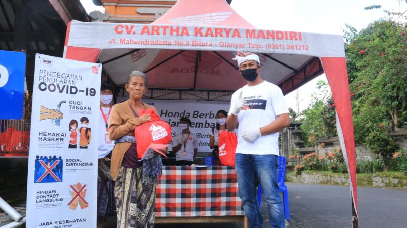 balitribune.co.id | Gianyar – Untuk meringankan beban masyarakat terutama kebutuhan pokok Astra Motor Bali bersama Dealer Artha Karya Mandiri, sebagai salah satu jaringan resmi sepeda motor Honda di wilayah Gianyar, menggelar kegiatan sosial, Sabtu 11 April 2020. Kegiatan yang merupakan salah satu aktivitas CSR dibawah naungan program "Honda Untuk Bali" menyasar pekerja pariwisata terutama pengrajin dan pedagang barang seni khusunya di wilayah Tampaksiring dan Tegallalang Gianyar.