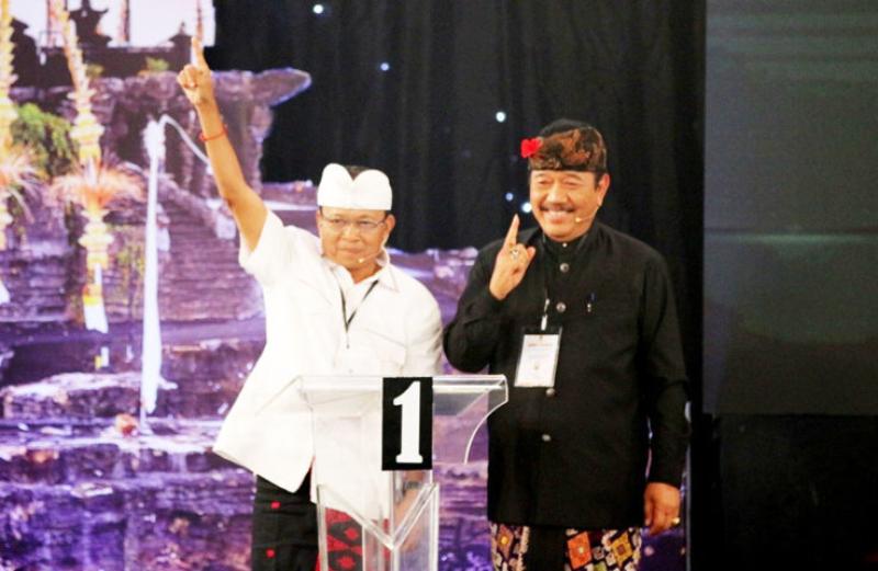 BALI TRIBUNE - Pasangan Calon Gubernur dan Wakil Gubernur Bali nomor urut 1 Wayan Koster-Tjok Oka Artha Ardhana Sukawati (Koster-Ace), tampil sangat meyakinkan pada debat kandidat Pemilihan Gubernur Bali 2018, Sabtu (28/4) malam di Ballroom Goodway Hotel & Resort, Nusa Dua.