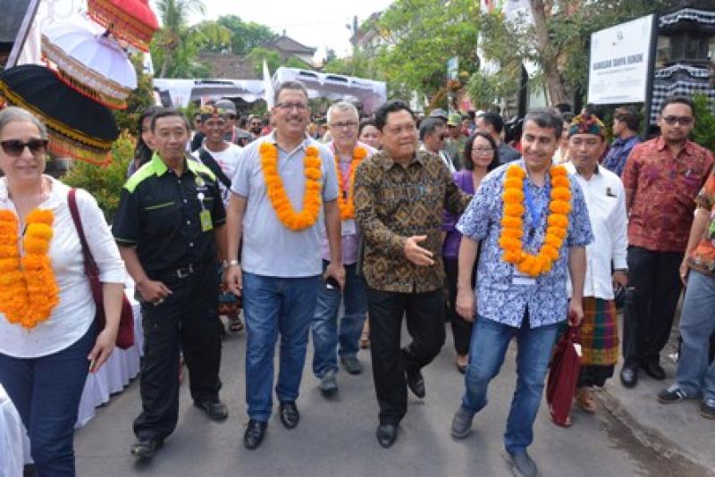 BALI TRIBUNE - Sinergitas pembangunan yang diterapkan pemkot Denpasar mendapat apresiasi dari kalangan internasional. Dengan menanamkan pola Sewaka Dharma dan Denpasar Smart City hingga tingkat desa/kelurahan menjadikan seluruh lapisan pemerintahan terkoneksi dengan maksimal. Seperti halnya di Desa Dangin Puri Kangin yang telah sukses mengembangkan Smart Village melalui aplikasi M-Desa yang merupakan pengembangan dari E-Sewaka. Karenanya, pada Selasa (16/10) Desa Dangin Puri Kangin mendapat kunjungan study lapangan delegasi Annual Meeting IMF-World Bank guna mengetahui lebih dalam tentang program smart village dan M-Desa yang mengantarkan Desa Dangin Puri Kangin menjadi desa terbaik di Indonesia. Kehadiran delegasi disambut Walikota Denpasar, IB Rai Dharmawijaya Mantra bersama Sekda Kota Denpasar, AAN Rai Iswara, serta seluruh jajaran OPD di Pemkot Denpasar. Beragam kesenian turut menyambut kedatangan para delegasi yang juga disuguhkan kuliner, kerajinan dan jajanan khas Bali. Di sela kesempatan tersebut tak jarang para delegasi turut mencoba busana adat Bali yang disediakan salah satu kelompok UKM local Salon Agung. Dalam pemaparannya, Perbekel Desa Dangin Puri Kangin, IGN Putrawan menjelaskan bahwa program smart village yang diwujudkan melalui pengembangan E-Sewaka dalam balutan M-Desa menjadikan Desa Dangin Puri Kangin salah satu pilihan kunjungan delegasi IMF-World Bank yang dilaksanakan di Bali. Beragam inovasi yang berhasil diwujudkan ini tak lepas dari inovasi dan sinergitas antara masyarakat, pemerintah desa dan pemerintah Kota Denpasar. Dimana, dengan pengembangan program berbasis digitalisasi ini tentu dapat mewujudkan smart village dan digital village yang merupakan pengejawantahan dari program smart city Pemkot Denpasar. “Kunjungan ini tentu menjadi kebanggan bagi kita semua khususnya masyarakat Desa Dangin Puri Kangin, besar harapan inovasi ini dapat menjadi referensi bagi seluruh pemerintahan di Indonesia dan Internasional bahwa Desa di Kota Denpasar taleh menerapkan teknologi dan digitalisasi dalam memberikan layanan kepada masyarakat,” paparnya. Lebih lanjut dikatakan, melalui M-Desa ini pelayanan masyarakat dapat dipermudah seperti surat kependudukan dan kegiatan pemerintahan desa berada dalam genggaman. Dimana, masyarakat Desa Dangin Puri Kangin dapat mengunduh aplikasi M-Desa ini pada Android dan IOS. “Dengan adanya aplikasi M-Desa ini tentu pelayanan masyarakat menjadi lebih maksimal, hal ini dikarenakan masyarakat dapat melaksanakan pengurusan administrasi kapan pun dan dimanapun serta hanya dengan genggaman android, besar harapan pelayanan dapat terus dimaksimalkan sebagai wujud implementasi Sewaka Dharma dan Sewaka Prajahita dengan melayani adalah kewajiban,” pungkasnya. Walikota Denpasar, IB Rai Dharmawijaya Mantra turut mengapresiasi beragam prestasi yang dicapai Desa Dangin Puri Kangin. Dimana, hingga saat ini penerapan desa digital dan smart village di Kota Denpasar sudah menyasar seluruh desa. Sehingga upaya memberikan kemudahan dan memberikan pelayanan kepada masyarakat dapat terus dimaksimalkan. “Saat ini sebagian besar desa di Kota Denpasar telah menerapkan layanan berbasis digitalisasi, kedepan akan terus didorong untuk berinovasi dalam memaksimalkanya,” paparnya sembari mengatakan bahwa kunjungan delegasi IMF-World Bank ini merupakan wujud nyata dalam memberikan citra posotif dalam mendukung berbagai program dan capaian kerja Pemkot Denpasar beserta jajaran hingga sector terbawah yakni desa/lurah.