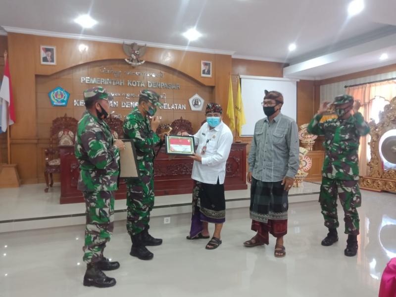 Piagam Juara I diserahkan langsung oleh Komandan Kodim 1611/Badung Kolonel Inf I Made Alit Yudana kepada Perbekel Desa Sidakarya I Wayan Rena di Ruang Pertemuan Rama Sinta Kantor Desa Sidakarya, Kamis (27/8).