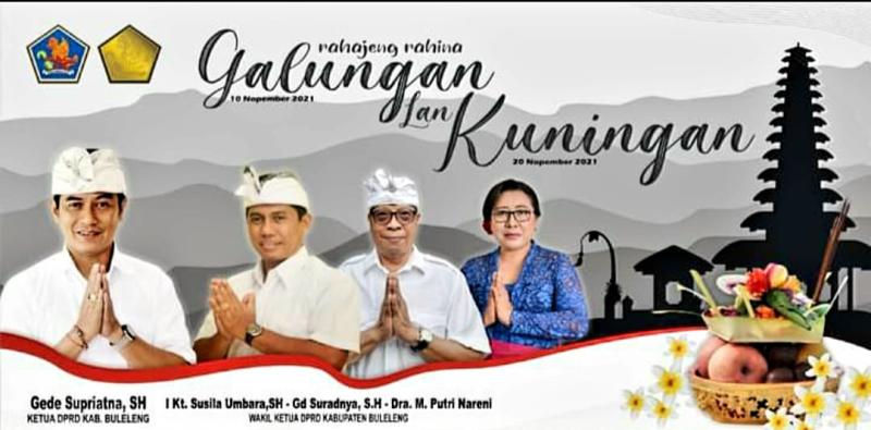 Ketua DPRD Buleleng, Gede Supriatna mewakili pimpinan dan anggota DPRD Buleleng serta staf Sekretariat DPRD Buleleng mengucapkan Selamat Hari Raya Galungan dan Kuningan kepada seluruh umat Hindu khususnya di Buleleng.
