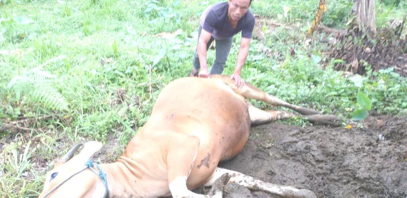 Bali Tribune/ ASURANSI SAPI – Peternak sapi di Badung ramai-ramai mengasuransikan ternak sapinya. Sebab, bila mati atau hilang langsung dapat ganti rugi. Nampak seorang peternak sedang mengurus ternak sapinya yang mati.