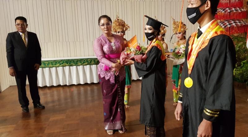 Ketua Yayasan Bahamas Wahana Semaya  Luh Ayu Komang Ari Ningrum,SE menyatakan bahwa dimasa pandemi ini merasa berbahagia bisa meluluskan dan menggelar acara mewisuda mahasiswa Bahamas Maritime School  angkatan ke 5. Dengan protokol kesehatan yang ketat, di tengah situasi Pandemi Covid-19 ini, Bahamas Maritime School mampu berbuat  mencetak tenaga handal di bidang kepariwisataan. Dimana dari 81 mahasiswa yang diwisuda dari masing masing jurusan  Food and Beverage Service,Food and Beverage Product dan Housekeeping.