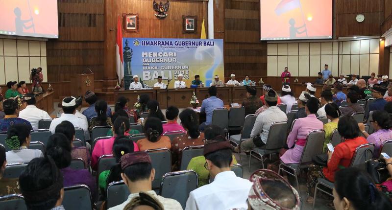 SIMAKRAMA – Suasana simakrama gubernur dengan masyarakat mengangkat topik Mencari Gubernur dan Wakil Gubernur Bali 2018-2023, di Gedung Wiswa Sabha Kantor Gubernur Bali, Sabtu lalu.