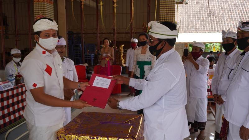 Balitribune.co.id | Negara - Setelah melalui pemilihan secara musyawarah mufakat, Bendesa Adat Pergung Terpilih I Nyoman Putra beserta Prajuru Desa Adat Pergung periode 2020–2025 dikukuhkan, Rabu (2/9). Pemilihan bendesa secara musyawarah mufakat ini mendapat apresiasi.